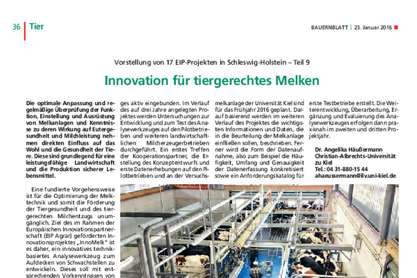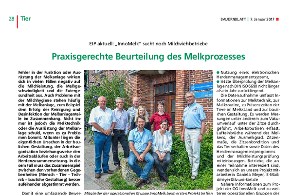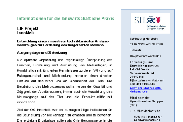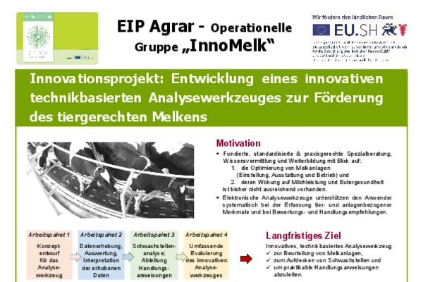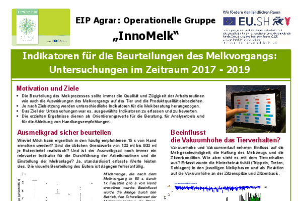 Ziel des Projekts war es, aussagekräftige Indikatoren zur Beurteilung der Melkanlage und des Melkprozesses zu erfassen. Auf dieser Grundlage sollten Schwachstellen identifiziert und gezielte Handlungsempfehlungen abgeleitet werden. Die Entwicklung eines elektronischen Analysewerkzeugs sollte die Melkberatung künftig gezielt unterstützen, der Melkprozess effizienter gestalten und das Tierwohl nachhaltig verbessern.