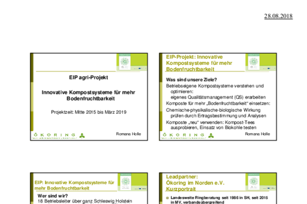 Die Praxisversuche haben ergeben, dass der Einsatz von Komposten einen positiven Einfluss auf die Bodenfruchtbarkeit hat und der Einsatz somit lohnenswert ist. In trockenen Anbaujahren empfiehlt sich das Ausbringen von Komposttees.