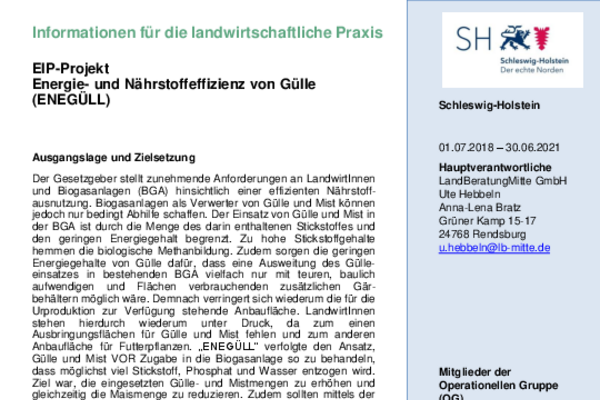 Energie- und Nährstoffeffizienz von Gülle (ENEGÜLL)