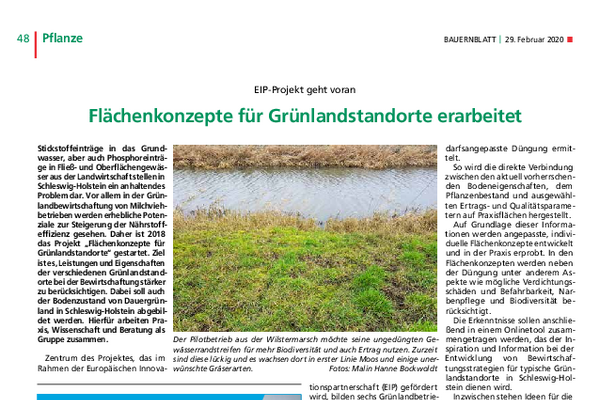 Die erhobenen Daten ermöglichten die Befüllung des digitalen Beratungstools „Grünlandportal Schleswig-Holstein“. Zudem lieferten sie wertvolle Erkenntnisse zu den unterschiedlichen Standorteigenschaften und Ertragspotenzialen der Grünlandflächen.
