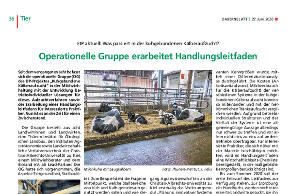 Vorrangiges Ziel des Projekts war die Entwicklung eines Leitfadens zur kuhgebundenen Kälberhaltung, der interessierte Betriebe sowohl bei der Einführung als auch bei der Weiterentwicklung des Verfahrens unterstützt.