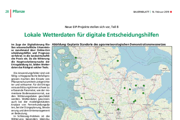 Mit der Digitalisierung fließen wissenschaftliche Erkenntnisse zunehmend über Online-Tools und Prognoseverfahren in die landwirtschaftliche Praxis ein. Dies verbessert die Bestandsführung und entlastet die Umwelt. In Schleswig-Holstein ist die Dichte öffentlicher Wetterstationen jedoch gering und viele Stationen erfassen die tatsächlichen Feldbedingungen nur unzureichend. Fehlerhafte Messungen – insbesondere bei privaten Stationen – bleiben oft unbemerkt und können zu falschen Handlungsempfehlungen führen.